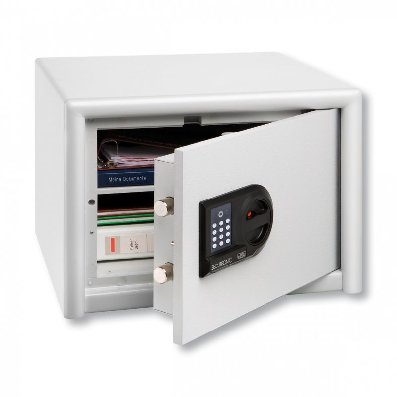 Elektronický kombinační zámek „SecuTronic“ testován dle VdS, certifikace ECB-S dle normy EN 1300 pro třídu B, zámek umožňuje 1 000 000 různých kombinací, zámek je napájen 3 ks baterií typu micro LR 03 AAA.