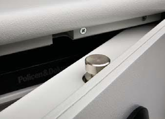• zamykání do stran pomocí tří masivních cylindrických závor o Ø 25 mm plus horní posuvné závory, elektronický kombinační trezorový zámek SecuTronic